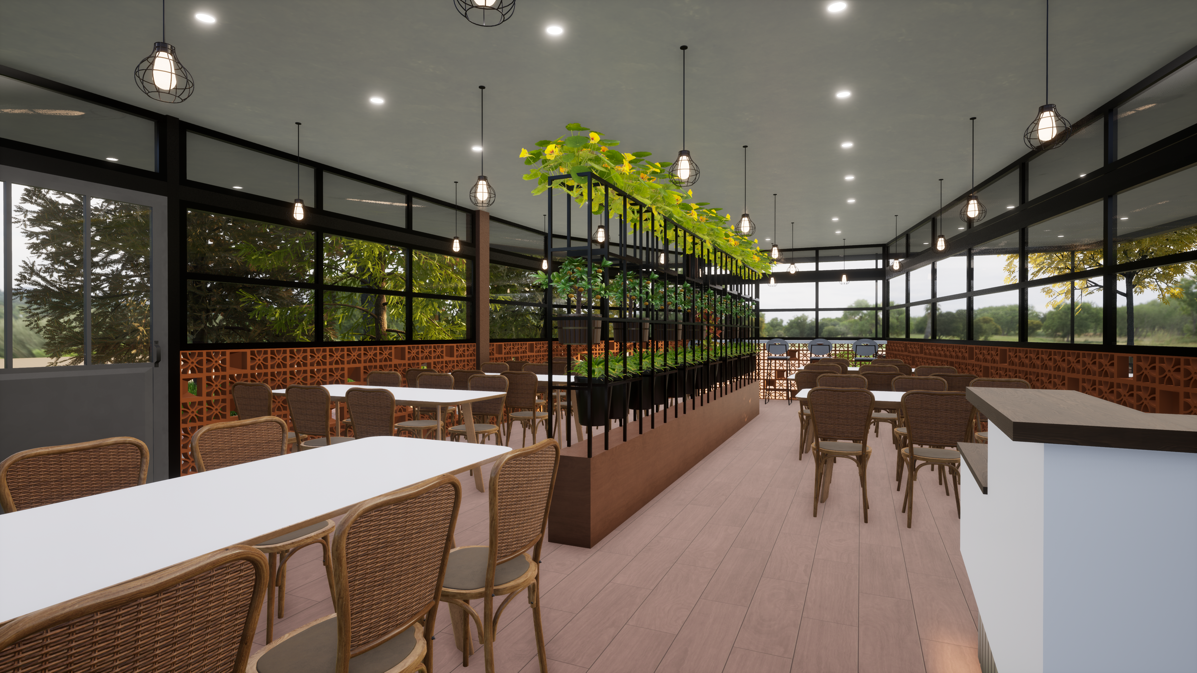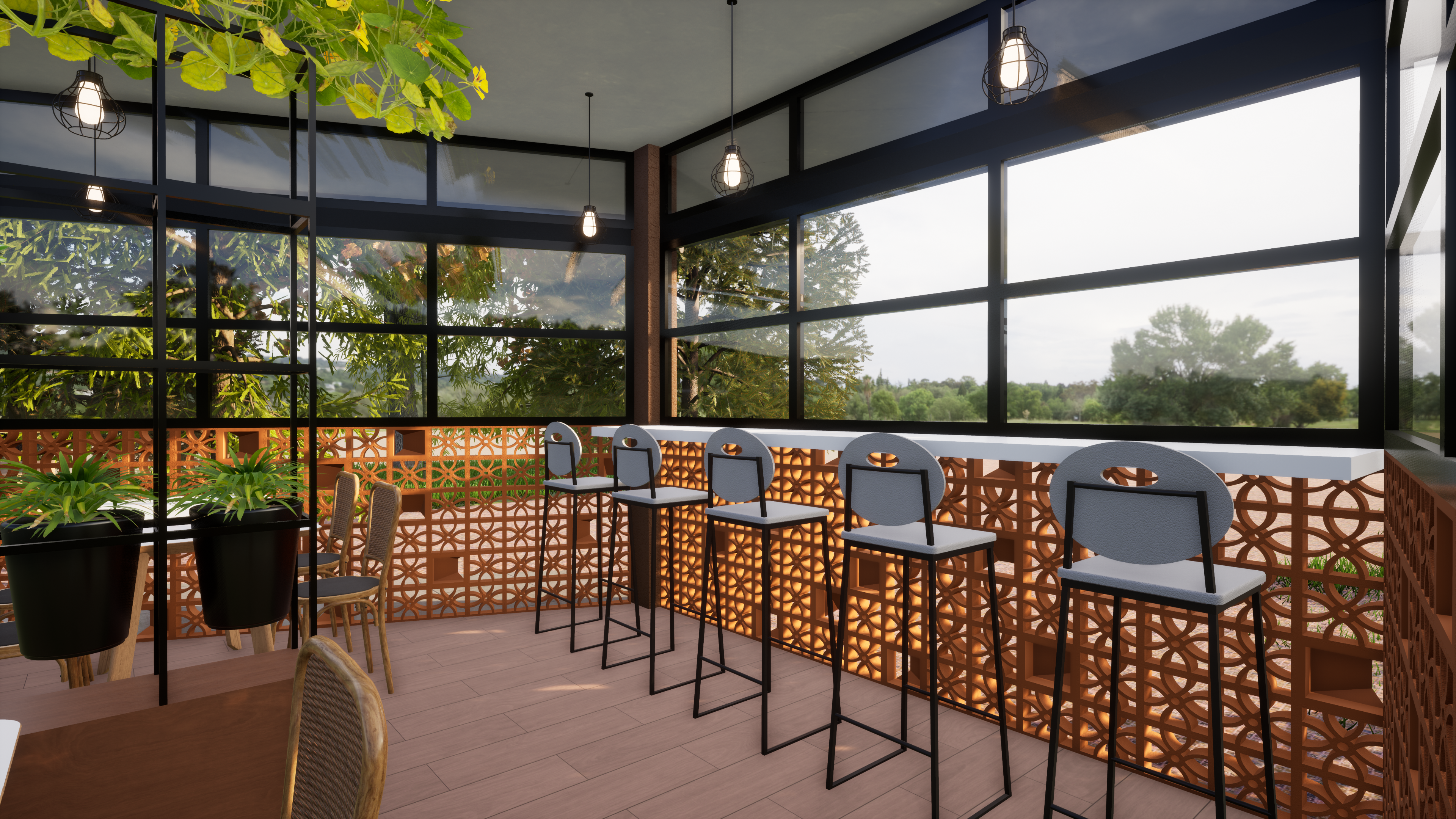 Innovative and stylish cafe layouts that combine aesthetics with functionality. These 3D renders focus on creating inviting spaces with unique décor, comfortable seating, and ambient lighting to enhance the overall café experience.